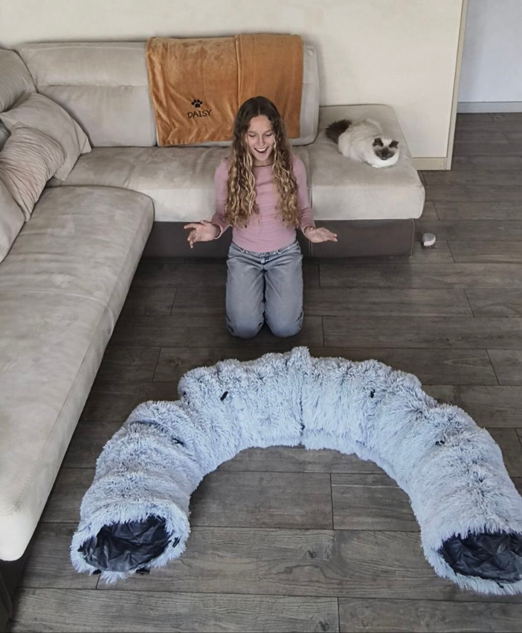 ✅3-en-1 malin — lit + tunnel + zone de jeu (pompon suspendu inclus).